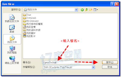 - 選擇你要存放的位置並輸入備份檔的檔名。